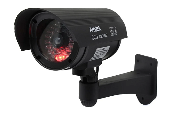 Amatek AC-MS1 - Муляж уличной видеокамеры со встроенной индикацией Корпус из АБС-пластика, размеры 174 x 85 x 108 мм Диод индикации для имитации работы видеокамеры. Питание 2 батарейки AA (в комплект не входят) вес 350 гр, цвет черный.