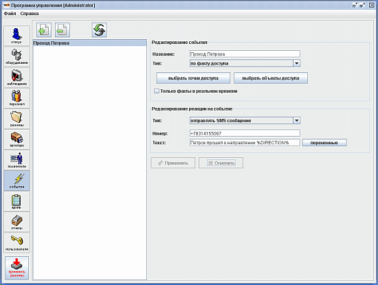 ПО Sigur «Реакция на события» - Дополнительный модуль