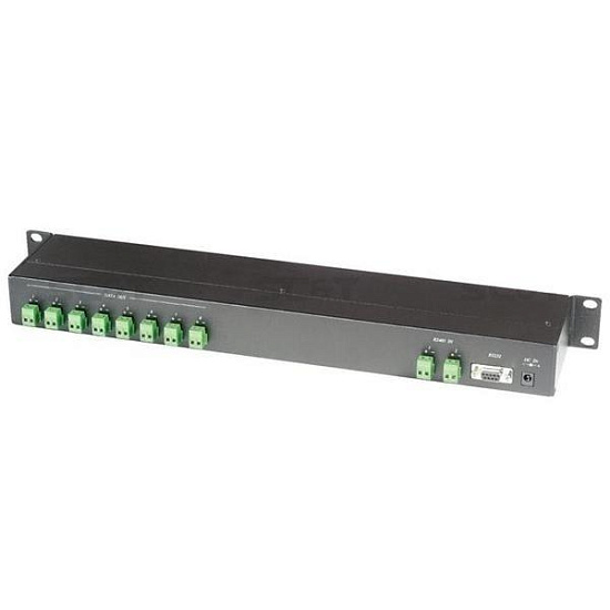 SC&T RS008 - Последовательный распределитель данных 1 вход RS485 под клеммы или RS232, 8 выходов RS485 под клеммы, максимальное расстояние подключения до 1200м по витой паре, возможность каскадного подключения к , RS016, корпус 19", 1U, блок питания AC220V/DC12V. Размеры (ШxВxГ): 483x44x100мм. Рабочая температура -40...+55°C.