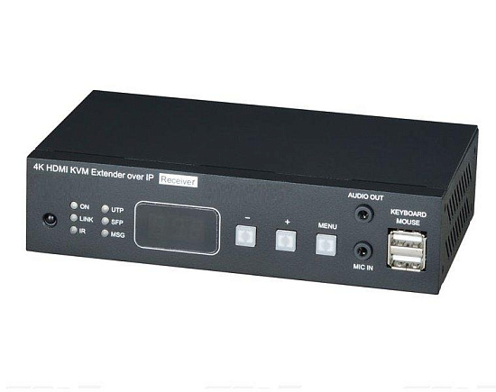 SC&T HKM02BPR-4K - Приемник KVM: HDMI(1.4, до 4K(30Гц), USB, аудио, RS232 и ИК сигналов по Ethernet до 150м (CAT5e/CAT6), поддержка питания устройства по стандарту PoE 802.3af. Поддержка функции аудиоэкстрактора/эмбеддера, включая возможность одновременного вывода аналогового звука и звука с HDMI. Встроенный масштабатор для адаптации входного разрешения под разрешение дисплея. Поддержка аудио: LPCM 7.1@192кГц, Dolby True HD, ATMOS, DTS-HD Master Audio, DTS:X. Можно использовать совместно с гигабитным PoE коммутатором для увеличения расстояния передачи сигнала и питания устройства. Встроенный USB-хаб: 2 порта с поддержкой USB 2.0 и 2 порта с поддержкой USB 1.1. Управление с фронтальной панели и мультисегментный ЖК дисплей. SFP слот для увеличения дистанции до 60км(SM), в зависимости от типа модуля. Подключение нескольких приёмников через гигабитную сеть. Гибкая масштабируемая матричная коммутация с поддержкой видеостен - до 8x16 мониторов в каждой(до 128 мониторов), возможность управления и настроек с помощью