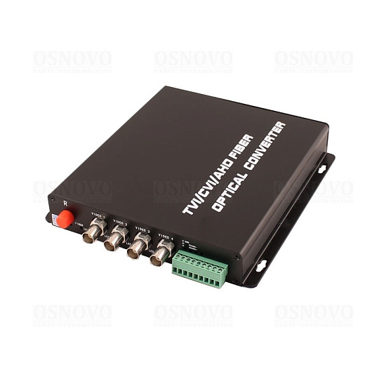 OSNOVO TA-H42/15F - оптический приёмник 4 каналов видео HDCVI/HDTVI/AHD/CVBS и 1 двунаправленного канала управления (RS485/полудуплекс) по одномодовому оптоволокну до 20км.