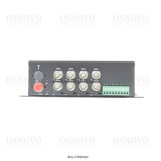 Оптический передатчик 8 каналов видео HDCVI/HDTVI/AHD/CVBS и 1 двунаправленного канала управления (RS485/полудуплекс) по одномодовому оптоволокну до 20км.