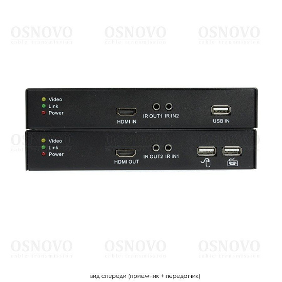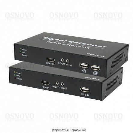 TA-HiKM+RA-HiKM Комплект для передачи HDMI, USB и ИК управления по кабелю витой пары (CAT5e/6) до 150м. Разрешение до 4K2K(3840x2160,60Гц). Поддержка HDMI 2.0 и HDCP 2.2. Порты USB предназначены только для подключения клавиатуры и мыши.Передатчик:Вх.-HDMI(A)/Роз.2,1x5,5мм(DC12V)/TRS3.5мм(IR).Вых.-USB(A)/TRS3.5мм(IR)/RJ45.Приёмник:Вх.-RJ45/TRS3.5мм(IR)/Роз.2,1x5,5мм(DC12V)/USB(A)x2. Вых.-HDMI(A)/TRS3.5мм(IR).В комплекте БП DC12V(1А) - 2шт,соединительные шнуры для подключения к источнику сигнала-HDMI, USB, ИК-излучатель, ИК-приёмник. Размеры каждого устройства (ШxВxГ): 131x32x93мм. Вес: 0,6 кг. Рабочая температура: -15...+55С.