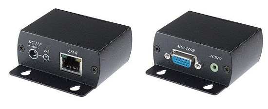 SC&T VE01HA - Комплект (передатчик T+приёмник R) для передачи VGA-сигнала высокого разрешения(1920х1200) и стерео аудиосигнала (20Гц-20кГц) по кабелю CAT5. Цифровое кодирование аудиосигнала. Дальность передачи: до 70м. Рабочая температура: -40... +55 С. Uпит= 12В, I= 0.5А (для передатчика), приёмник не требует внешнего источника питания. В комплекте БП, соединительный шнур VGA и аудио (штекеры 3,5мм). Размеры каждого устройства (ШxВxГ): 87х27х67мм.