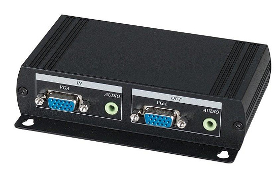 SC&T VE05ALT - Передатчик VGA-сигнала и стерео аудиосигнала на 4 удаленных устройства. 1 видео-, аудиовход (1х DB15, 1х TRS 3.5 мм), 1 сквозной видео-, аудиовыход (1х DB15, 1х TRS 3.5 мм), разъемы для передачи сигнала на удаленные устройства (4х RJ45). Дальность передачи на удаленное устройство: до 300 м. Разрешение видеосигнала: до 1920x1200 пикселей, 60 Гц. Поддержка протоколов DDC, DDC 2, DDC 2В (для определения локальным монитором оптимального разрешения и частоты). Цифровое кодирование аудиосигнала. Рабочая температура: 0... +55 С. Uпит= 5В, I= 0.7А (макс.). Размеры (ШxВxГ): 125х30х96мм. Блок питания в комплекте. Рабочая температура -40...+55°C.