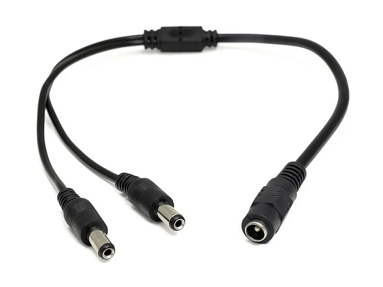 Amatek AVC-DC-M2 - Разветвитель питания «1-2» Соединительный кабель для разветвления линии питания 1 гнездо (внутренний контакт 2.1х5.5 мм) на 2 штекера (2.1х5.5 мм).