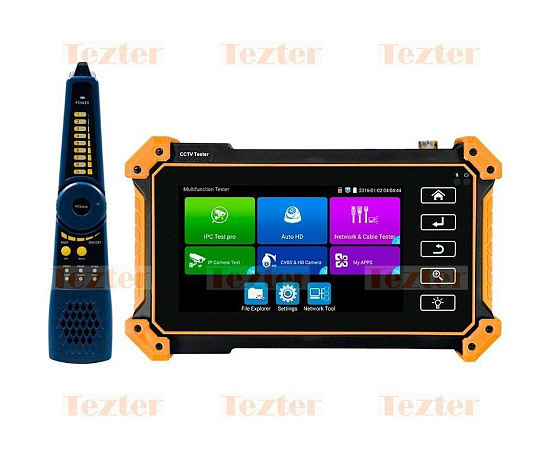 Tezter TIP-H-T-5 - Универсальный монитор-тестер AHD/CVI/TVI/CVBS и IP-видеосистем. (Базовая модель + детектор кабельной трассы). Возможности: Поддержка ONVIF; 8Mp TVI, 8Mp CVI, 8Mp AHD; Доступ в Web-интерфейс камеры с помощью встроенного браузера; Android - Приложения для управления камерами c возможностью самостоятельной установки/удаления ПО; Audio/Video плееры; Запись аудио/Video потоков, скриншотов на карту памяти; Кабельный рефлектометр с интерфейсом RJ-45; измерение уровней видеосигнала, генератор тестовых таблиц; проверка UTP-кабеля; тестирование IP-сетей; RTSP; измерение РоЕ-напряжения; генератор CVBS; PTZ-управление; Мониторинг интерфейса RS485; источник питания PoE (48V, 24Вт); источник питания DC12V/3А. Разъемы: 2хRJ45; HDMI и VGA входы; BNC; клеммы(RS485); jack 3,5мм вход, слот MicroSD. Характеристики: Разрешение экрана - 5" 1920x1080; Wi-FI IEEE 802.11n 150mbit/s; Батарея Li-Pol 7,4V 3350mAh; Размеры (ШхВхГ): 183x36.5x110мм; Рабочая температура от -10°С до 50°С.