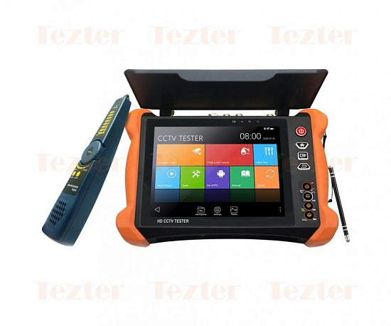 Tezter TIP-HOL-MT-8 - Универсальный монитор-тестер AHD/CVI/TVI/CVBS/SDI и IP-видеосистем. (Базовая модель + мультиметр + измеритель оптич. мощности + тестер оптич. линий + кабельный рефлектометр BNC + детектор кабельной трассы). Возможности: Поддержка ONVIF; 8Mp TVI, 8Mp CVI, 8Mp AHD, HD-SDI 1080p/EX-SDI 8Mp; Доступ в Web-интерфейс камеры с помощью встроенного браузера; Android - Приложения для управления камерами c возможностью самостоятельной установки/удаления ПО; Audio/Video плееры; Запись аудио/Video потоков, скриншотов на карту памяти; Кабельный рефлектометр с интерфейсом RJ-45 и BNC; измерение уровней видеосигнала, генератор тестовых таблиц; проверка UTP-кабеля; тестирование IP-сетей; RTSP; измерение РоЕ-напряжения; генератор CVBS; PTZ-управление; Мониторинг интерфейса RS485; HDMI-генератор; источник питания PoE (48V, 24Вт); источник питания DC12V/3А; источник питания DC24V/2A; источник питания DC5V/2А (USB), мультиметр; детектор кабельной трассы; локатор COAX/UTP кабеля; тест оптич. линий; измеритель