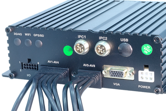 ViGUARD MDVR G8 - 8-ми канальный автомобильный регистратор AHD/TVi/CVi + 2 IP Видео вход: 8хAHD/TVi/CVi + 2 IP 1080P (H.265) Видео выход: 1 канал PAL/NTSC, 1 канал VGA (1920 х 1080) Бюджет: PAL: 200 кадров; NTSC: 240 кадров Аудио вход: 8 независимых каналов Жесткий диск: 1 х SATA SSD/HDD до 2 ТБ, 1 х SD до 256 Гб Датчик движения: Встроен USB: 1 x USB 2.0 Спутниковое слежение: GPS/GLONASS Датчик удара: Встроен Потребляемая мощность: Постоянное напряжение 8-36 В