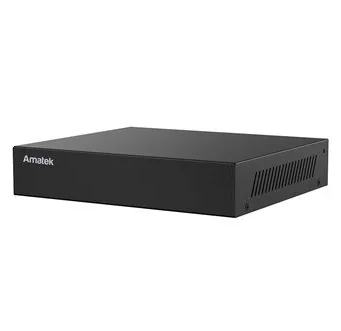 Amatek AR-N911FP (8 PoE) - Видеорегистратор IP 9 канальный H264/H264+/H265/H265+ NVR, ONVIF (Profile S/T), «облачный» сервис. Встроенный коммутатор на 8 портов с PoE до 200 метров. Процессор NT98631, операционная система Linux, потоки: вход 80Mbps / выход 80Mbps. Режимы записи в реальном времени (25fps): 6 каналов 12Мп, 9 каналов 8/5/4/3/2/1,3/1 Мп. Воспроизведение: 1 канал 12Мп/4K, 2 канала 5М, 4 канала 4Мп, 7 каналов 2Mп, 9 каналов 1Мп. Видеовыход: 1хHDMI 4К (3840×2160/30Гц). 1 диск SATA HDD до 8TB. Аудиокодеки: AAC, G711u, G711a. 8 портов LAN 100Mbps PoE 15/30 Вт (IEEE 802.3af/at) / 1 WAN Ethernet RJ45 100Mbps. Бюджет PoE 45Вт, 2шт. USB2.0. Питание 48В/1360мА ≤9,5Вт (без диска и POE). Размеры 200x175x40мм. Вес 0,57кг. Приложение BitVision.