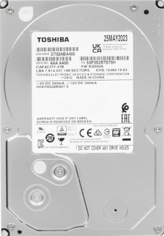 Toshiba DT02ABA400 - Жесткий диск 4Tb 5400rpm, 128MB buffer, 512e, SMR, Desktop HDD 3.5" SATA