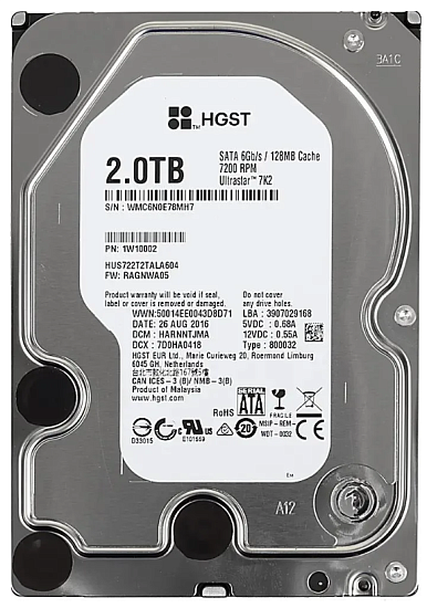 Western Digital HUS722T2TALA604 - 2Tb WD Ultrastar DC HDD Server 7K2 (3.5’’, 2TB, 128MB, 7200 RPM, SATA 6Gb/s, 512N (1W10025/1W10002)