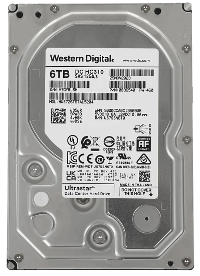 Western Digital HUS726T6TAL5204 - 6Tb Ultrastar DC HDD Server 7K6 (3.5’’, 6TB, 256MB, 7200 RPM, SAS 12Gb/s, 512E SE)