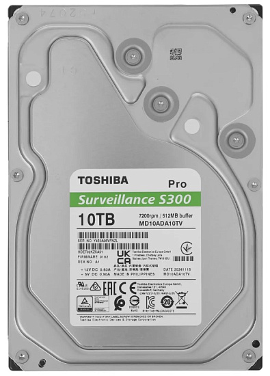 10TB Toshiba Surveillance S300 Pro (MD10ADA10TV) {SATA 6.0Gb/s, 7200 rpm, 512Mb buffer, 3.5" для видеонаблюдения}