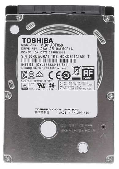 Toshiba MQ01ABF050 - 500Gb {Serial ATA III, 5400 rpm, 8Mb buffer, 7mm}