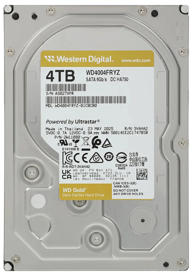 Western Digital WD4004FRYZ - 4TB WD Gold {SATA III 6 Gb/s, 7200 rpm, 256Mb buffer}