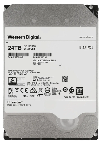 Western Digital WUH722424ALE6L4 - 24Tb WD Ultrastar DC HC580 {SATA 6Gb/s, 7200 rpm, 512mb buffer, 3.5"}
