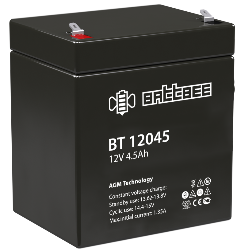 Описание: Battbee BT 12045 - Стационарный аккумулятор Battbee BT 12045 (напряжение 12 В, ёмкость 4.5 Ач) разработан специально для охранно-пожарных систем, он может использоваться в буферном и циклическом режимах. Срок службы батареи при соблюдении правил эксплуатации составляет 3 года.