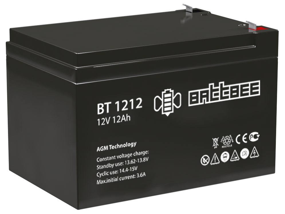 Аккумуляторные батареи Battbee серии BT применяются: в системе безопасности и контроля доступа, системы аварийного освещения, электронные кассовые аппараты, электронное тестовое оборудование и в переносном оборудовании. Данные аккумуляторные батареи являются свинцово-кислотные и производятся напряжением 12 В. Особенностями данными аккумуляторными батареями являются то, что: они не имеют ограничения на воздушные перевозки, можно эксплуатировать в любом положении, корпус аккумулятора выполнен из пластика ABS, не поддерживающего горения, отсутствие ее обслуживании на протяжении всего срока службы, низкий саморазряд а так же произведена по технология AGM что позволяет рекомбинировать до 99% выделяемого газа;