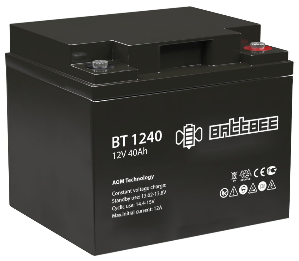 Описание: Battbee BT 1240 - Стационарный аккумулятор Battbee BT 1240 (напряжение 12 В, ёмкость 40 Ач) разработан специально для охранно-пожарных систем, он может использоваться в буферном и циклическом режимах. Срок службы батареи при соблюдении правил эксплуатации составляет 3 года.