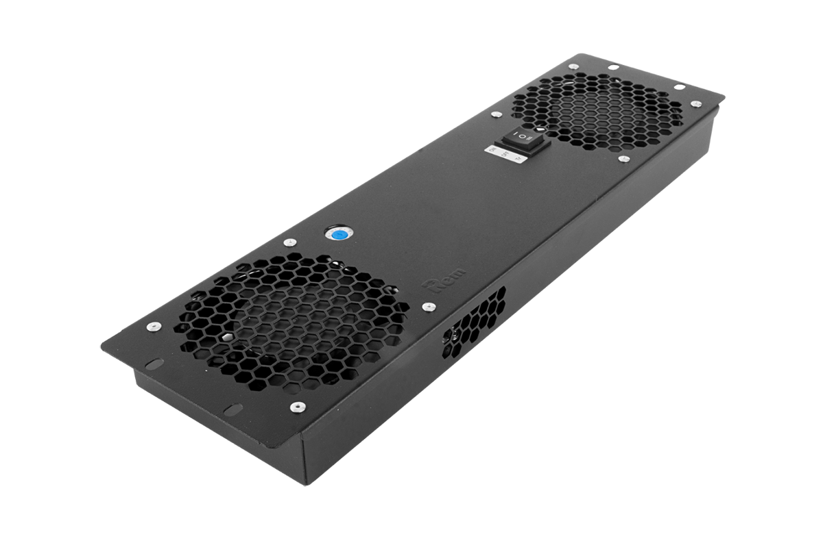 Описание: R-FAN-2T-3U-9005 - Модуль вентиляторный, 2 вентилятора с терморегулятором 3U, чёрный